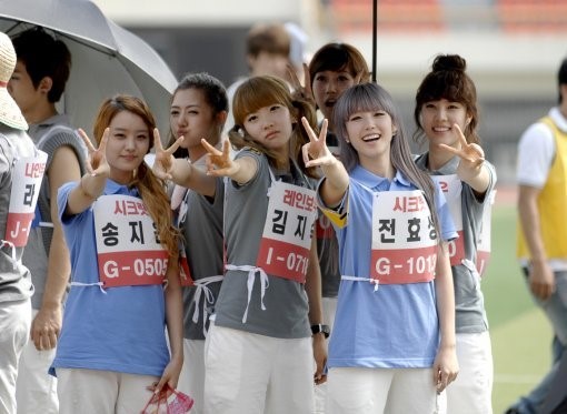 | 아이돌 스타들의 육상, 수영에 이어 지성과 미를 견주는 ‘미스코리아 대회’가 열린다. 사진은 육상대회에 참여했던 시크릿과 레인보우 멤버들. 사진제공|MBC |