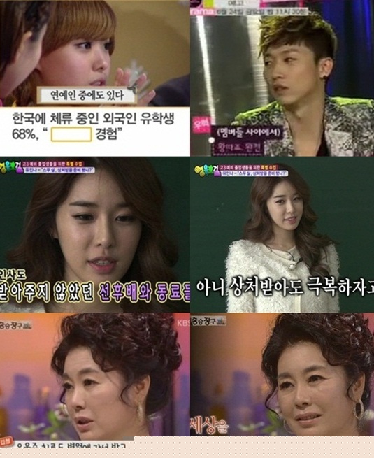 외국에서까지 인종차별에 따른 왕따로 마음고생을 한 스타들도 있다. '몸짱 트레이너' 숀리는 몸이 너무 왜소해 서양인들에게 무시를 받았다는 경험을 들여주었고, 배우 리키김은 "한국에서는 미국 사람으로, 미국에서는 한국 사람으로 취급받았다. 때문에 항상 왕따였다"고 기억을 더듬었다.